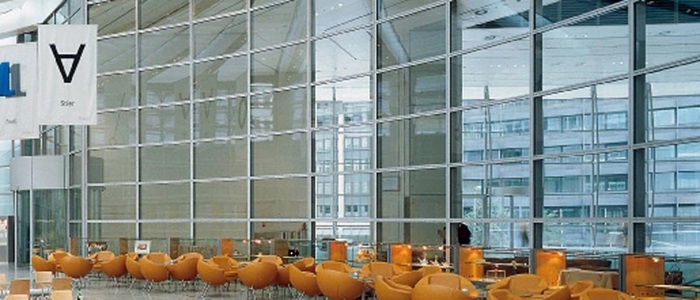 Pilkington Pyrostop® is designed for interior and exterior use where thermal insulation is required in the case of fire up to class EI 180. It is suitable for use with steel, aluminium and timber frames in monolithic form or insulating glass units. Pilkington Pyrostop® is ideal for use in transparent fire walls, windows (special application), doors, screens, partitions and façades as well as for horizontal applications (roof and inclined glazing).