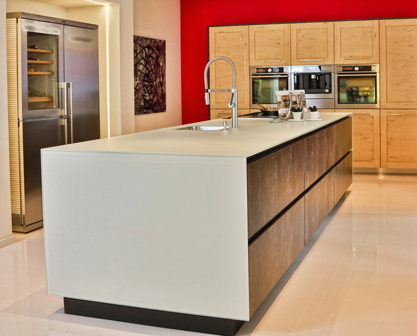 Die Arbeitsplatten, das Designglas, sind in vielen Formen und Varianten erhältlich - Eine breite Farbpalette sowie besondere Farbbrillanz durch die Verwendung von eisenoxidarmen Pilkington Optiwhite™, so sind der Fantasie fast keine Grenzen gesetzt!