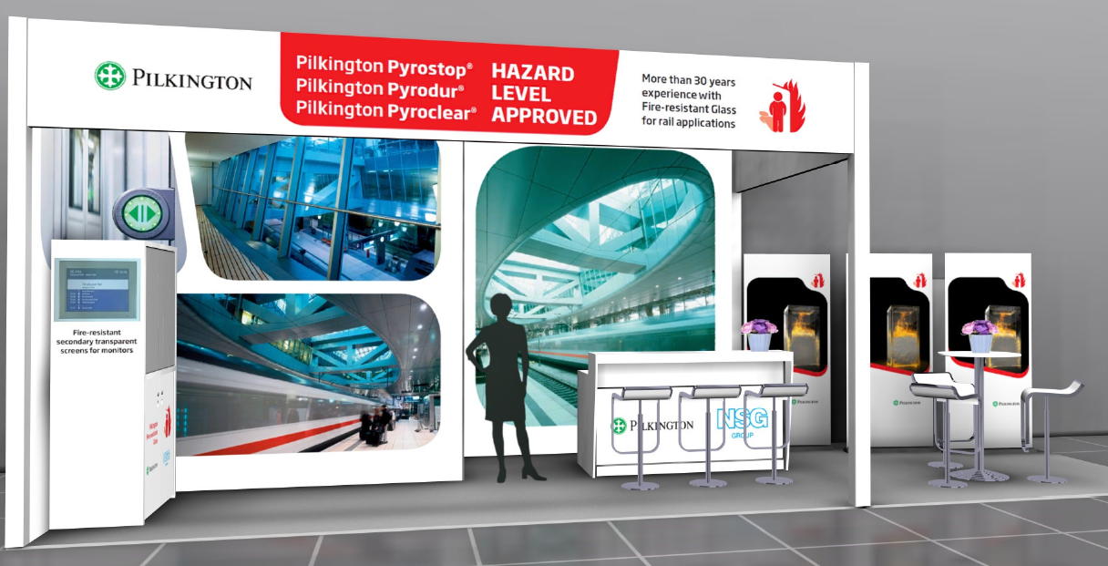 Auf unserem Stand werden die Brandschutzgläser Pilkington Pyrostop® R, Pilkington Pyrodur® R und Pilkington Pyroclear® R präsentiert. Diese Gläser finden vielfältige Anwendungen und erfüllen spezifische Nachweise, Normen sowie alle geforderten Brandschutzklassen für den Einsatz in Zügen und anderen schienengebundenen Fahrzeugen.