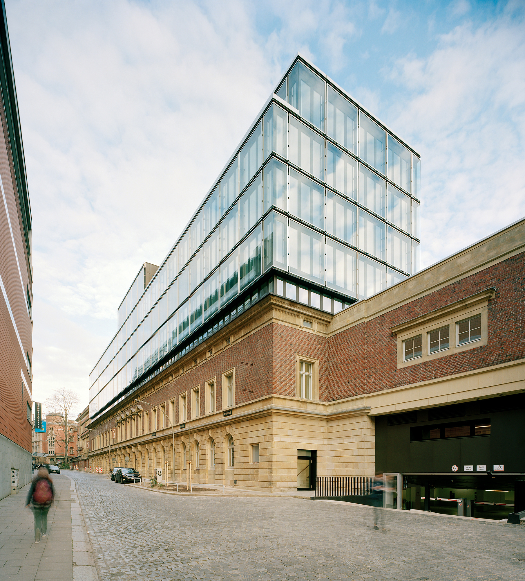 Die ehemalige Oberpostdirektion am Stephansplatz gehört zu den imposantesten historischen Gebäuden in der Innenstadt. Nach der Sanierung und Erweiterung des mittleren Bauteils durch den Projektentwickler DWI Gruppe Hamburg verbinden jetzt gläserne Dachaufbauten die beiden Gebäudeflanken zu einem eindrucksvollen Ensemble aus „Alt“ und „Neu“. Die nach außen gezeigte Transparenz des denkmalgeschützten Gebäudes wird im Innern eindrucksvoll fortgeführt. Großzügige Verglasungen erfüllen dabei hohe funktionale Ansprüche an den Brand- und Schallschutz. Eine transparente Brandschutzfassade im 1. OG sowie zahlreiche feststehende Brandschutz-Elemente und Brandschutztüren ermöglichen sichere Flucht- und Rettungswege aus der zentralen Glashalle. Eingebaut wurden Brandschutzverglasungen mit Pilkington Pyrostop® der Feuerwiderstandsklasse EI(F) 30 in Forster Brandschutzsystemen.