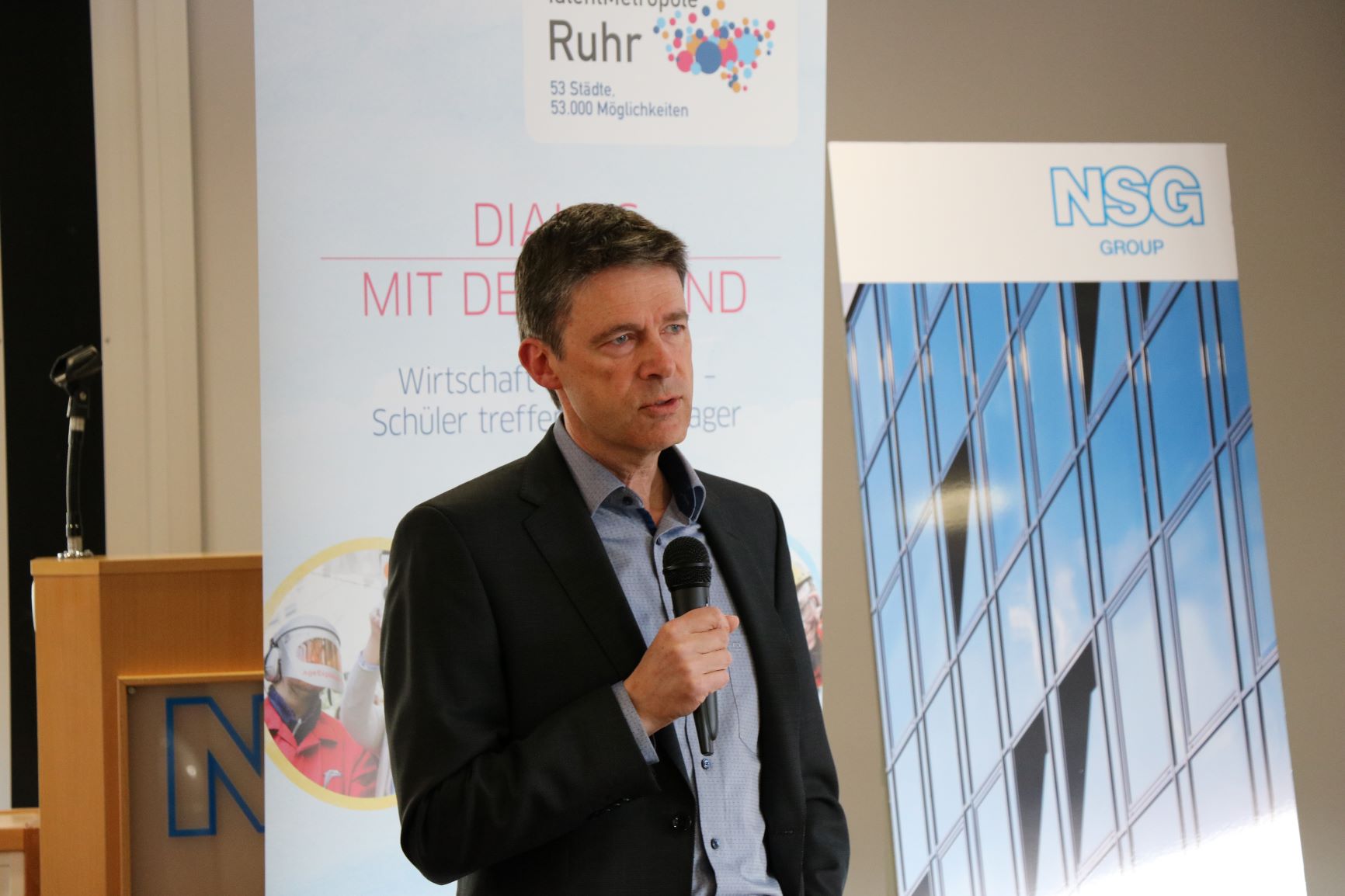 Im Rahmen der Veranstaltungsreihe „Dialog mit der Jugend“ besuchten am 13. Februar 2019 Schülerinnen und Schüler von verschiedenen weiterführenden Schulen im Ruhrgebiet das Floatglaswerk in Gladbeck. Im Mittelpunkt der Veranstaltung stand der direkte Austausch der Schülerinnen und Schüler mit Dr. Christian Quenett, Vorstand der Pilkington Deutschland AG.