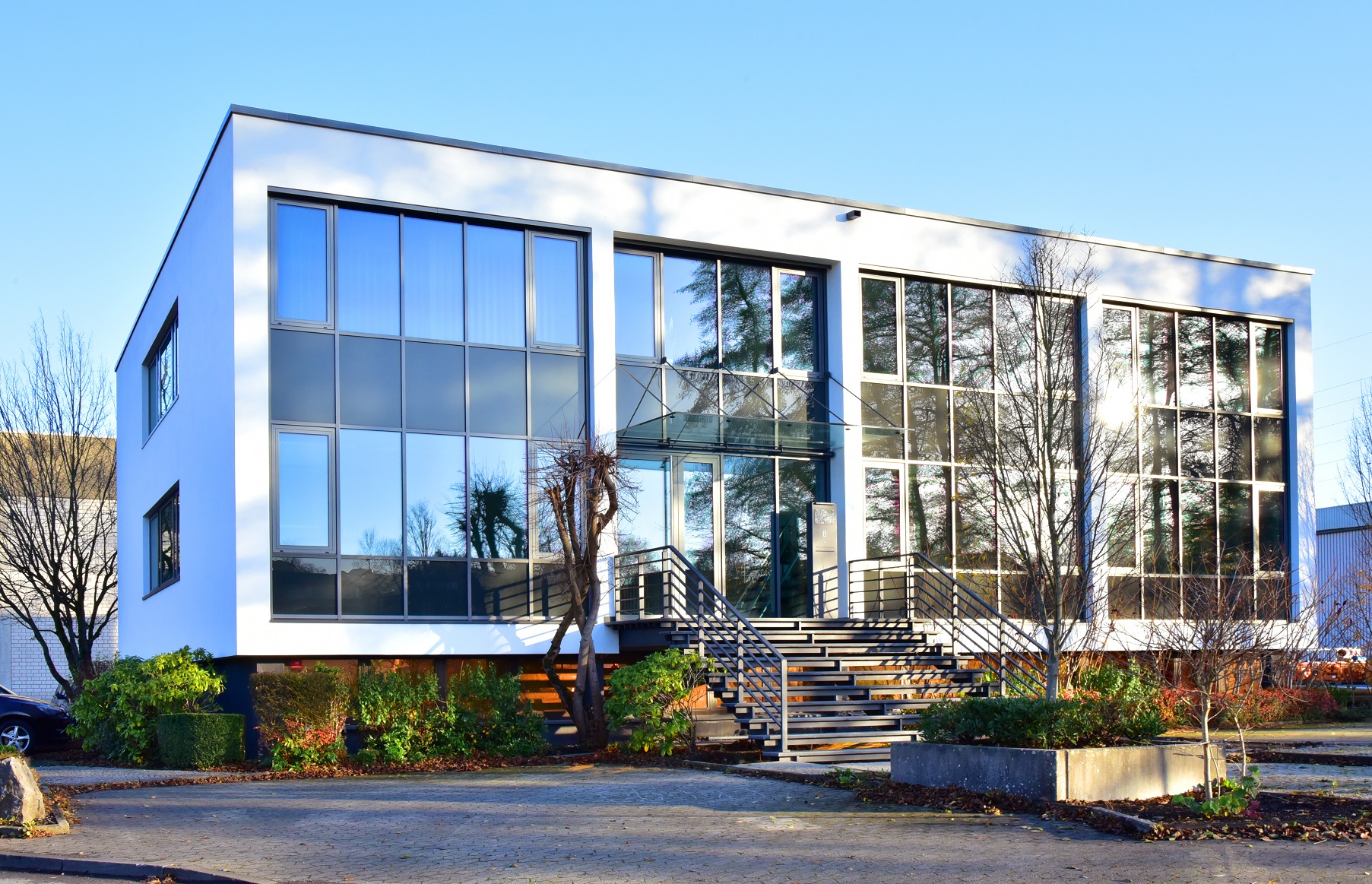Die Fassade des Verwaltungsgebäudes der Firma Rudolf Hilgenroth GmbH & Co. KG im sauerländischen Sundern hat neue Isolierglaseinheiten mit Pilkington Suncool™ Q 60 erhalten. Insgesamt wurden 250 m² des Sonnenschutzglases verbaut, die Firma Risse Glas GmbH fertigte hierfür die Isolierglaseinheiten. Das Architekturbüro Otte-Nöcker-Planung übernahm die planerische Beratung für das Objekt und wählte die Fassadenplatten Delogcolor® Grau der Flachglas Wernberg GmbH für die ergänzende Verkleidung des Gebäudes aus. Die Objektberatung für dieses Projekt übernahm die Flachglas Markenkreis GmbH.
