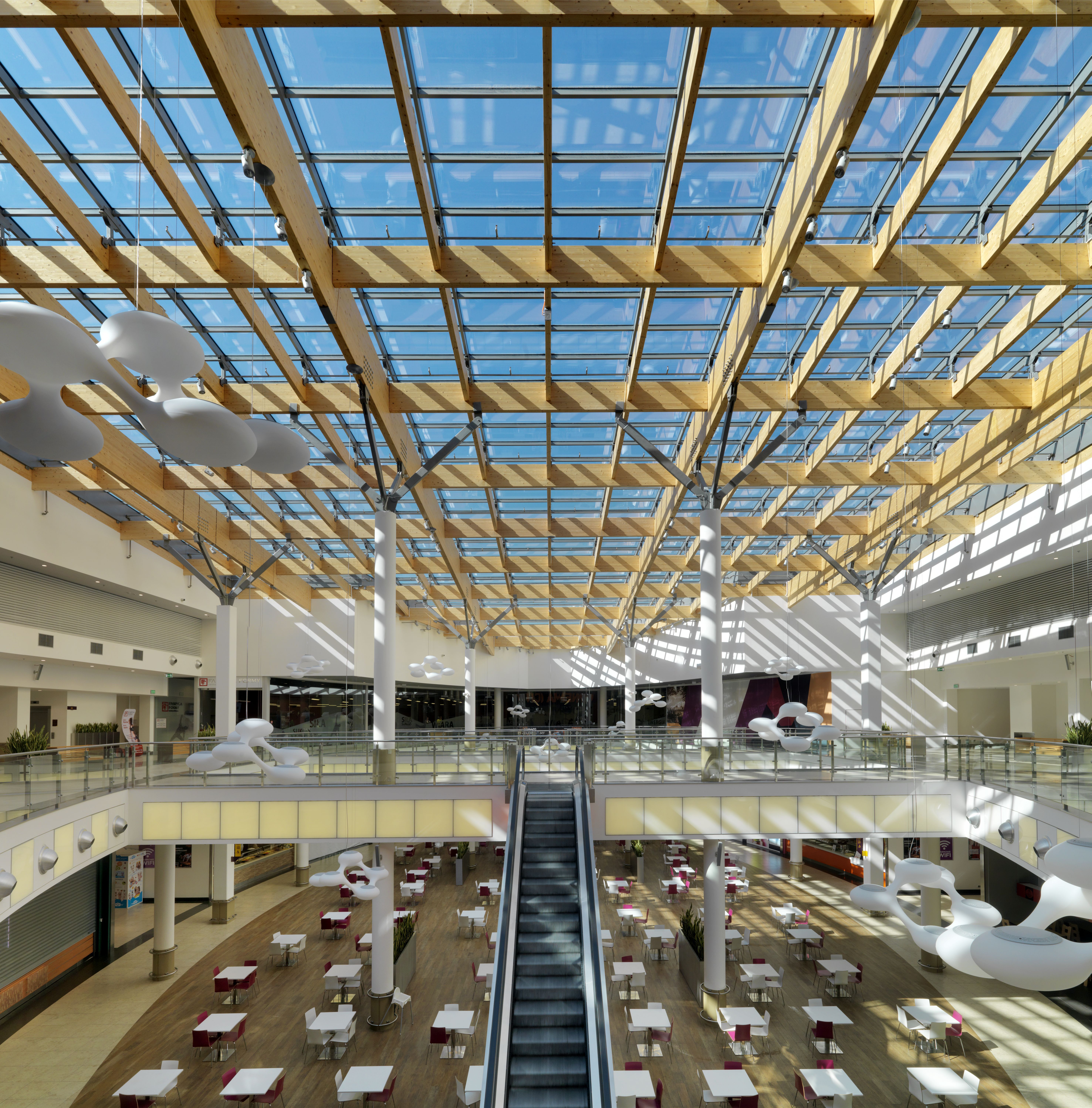 Einkaufszentren sind Orte, in denen wir uns in der Regel etwas länger aufhalten. Damit wir uns dort auch wohlfühlen, sind sie so konzipiert, dass uns deren Architektur nicht einengt, sondern ein möglichst großes Areal gut überschaubar ist. Dabei spielen Licht und die Verwendung der eingesetzten Baustoffe eine große Rolle. Dabei kommt eine Menge Glas zum Einsatz.