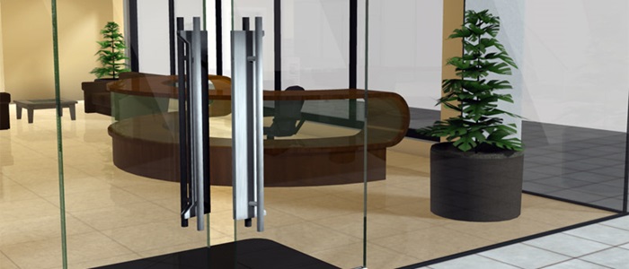Specialist companies can provide revolving doors and patch fittings to create an expanse of glass with the minimum of architectural hardware.