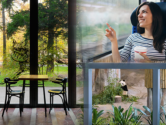 - Les façades de bâtiment, en surface intérieure d’un double vitrage composant tout ouvrage vitré extérieur dans des établissements tels que les écoles, les hôpitaux, les restaurants ou les hôtels.