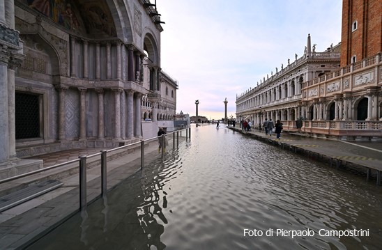 Piazza San Marco, tra le più rinomate piazze monumentali d’Italia, nota a livello mondiale per la sua bellezza e la sua unicità, rischia quotidianamente di essere deteriorata dalle alte maree poiché situata nell’area più bassa della città. La media di acque alte superiori ai 60 cm, in condizioni di invadere il nartece e la pavimentazione della sua Basilica, è ben 250 casi all’anno, un numero assai elevato per i danni e i dissesti che queste provocano al monumento.
