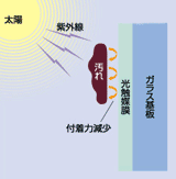 製品につきましては、本年2月より「クリアテクト®」としてビル用ガラスへの加工商品を正式発売しご好評を頂戴しておりますが、当社独自開発の「光触媒結晶化シード層技術」(下記1)を用いることで、光触媒によるイージークリーン効果を住宅用窓ガラスの中心になりつつある遮熱高断熱複層ガラスに付加することに成功しました。