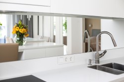 Dekorativa stänkskydd vid diskbänken är på väg tillbaka och då speciellt med speglande effekt. Genom att ljus reflekteras in i rummet så blir det ljusare och ser större ut.