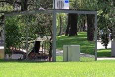 Pilkington Mirropane™ Chrome Plus är mer opak och lämplig för applikationer som inte kräver någon ljustransmission. Den kan användas som fasadelement.