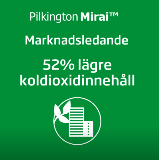 Pilkington Mirai™, som produceras av NSG Group, har verifierats av oberoende tredje part att ha 52% lägre inbäddad mängd koldioxid jämfört med standard floatglas, vilket innebär att det är glaset med lägst klimatavtryck i sitt slag.